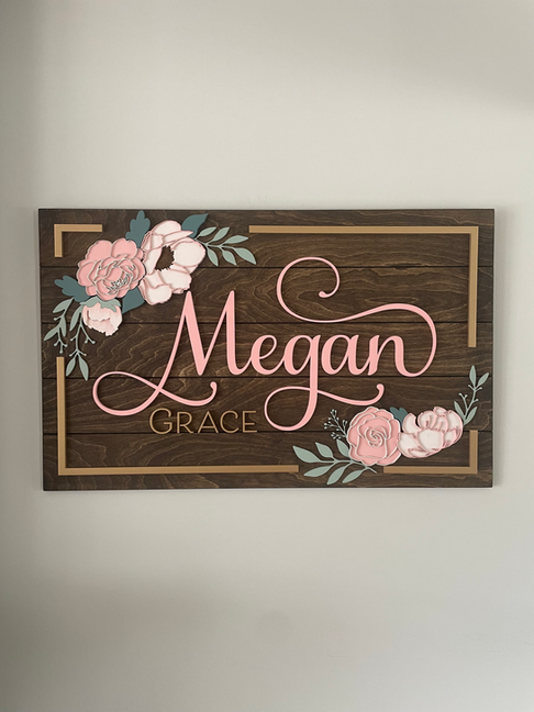 This elegant floral name sign blends soft peonies, anemones, and layered foliage to create a beautifully textured piece perfect for nurseries, bedrooms, or special celebrations. Each flower is built with multiple hand painted layers, giving the design depth and a handcrafted, heirloom feel. Thoughtful, timeless, and fully customizable, it makes a generous new-baby gift and a keepsake that will grow with your little one for years to come. Every element is hand-painted in your chosen colours, allowing you to create a piece that reflects your family’s style and story.
