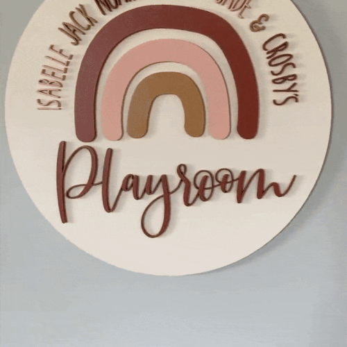 This rainbow playroom sign brings a cheerful, personalized touch to your children’s space, featuring layered rainbow arches and raised lettering that feels fun and welcoming. Whether showcasing each child’s name or your family name, it adds a sweet focal point that blends beautifully with colourful, modern, or whimsical décor. Thoughtfully handcrafted, it creates a joyful accent that makes any playroom feel extra special.