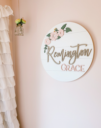 This sweet and feminine name sign features a faux-shiplap backboard with a simple cluster of soft florals. The raised lettering and gentle colour palette make it a lovely addition to any nursery, adding warmth and a personalized touch without overwhelming the space. A thoughtful gift for new parents, it brings a soft botanical charm to your child’s room.
