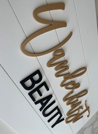 Every Wildcomb sign is carved, cut, and finished in our home workshop in the Similkameen Valley of British Columbia. My husband and I create each sign by hand — from sanding and painting, to assembling every layer — so no two pieces are ever exactly the same. Natural variations in wood grain and colour are part of what make your sign a truly one-of-a-kind piece.