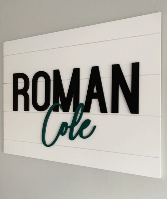 This clean and modern rectangle name sign features a smooth faux-shiplap backboard and bold raised lettering. Its simple, timeless layout makes it a perfect choice for nurseries, kids’ rooms, or as a thoughtful baby shower gift. With its warm wooden frame and handcrafted details, it’s a piece designed to be enjoyed for years to come.